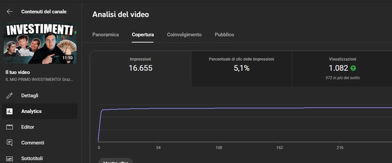 Queste sono le statistiche con un canale da 300 iscritti.